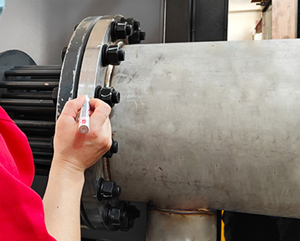 所有法蘭、閥門螺絲擰緊狀態(tài)采用全檢,檢測(cè)后使用打點(diǎn)筆打點(diǎn)再次確認(rèn),確保無(wú)漏檢、漏裝的異常現(xiàn)象發(fā)生。
